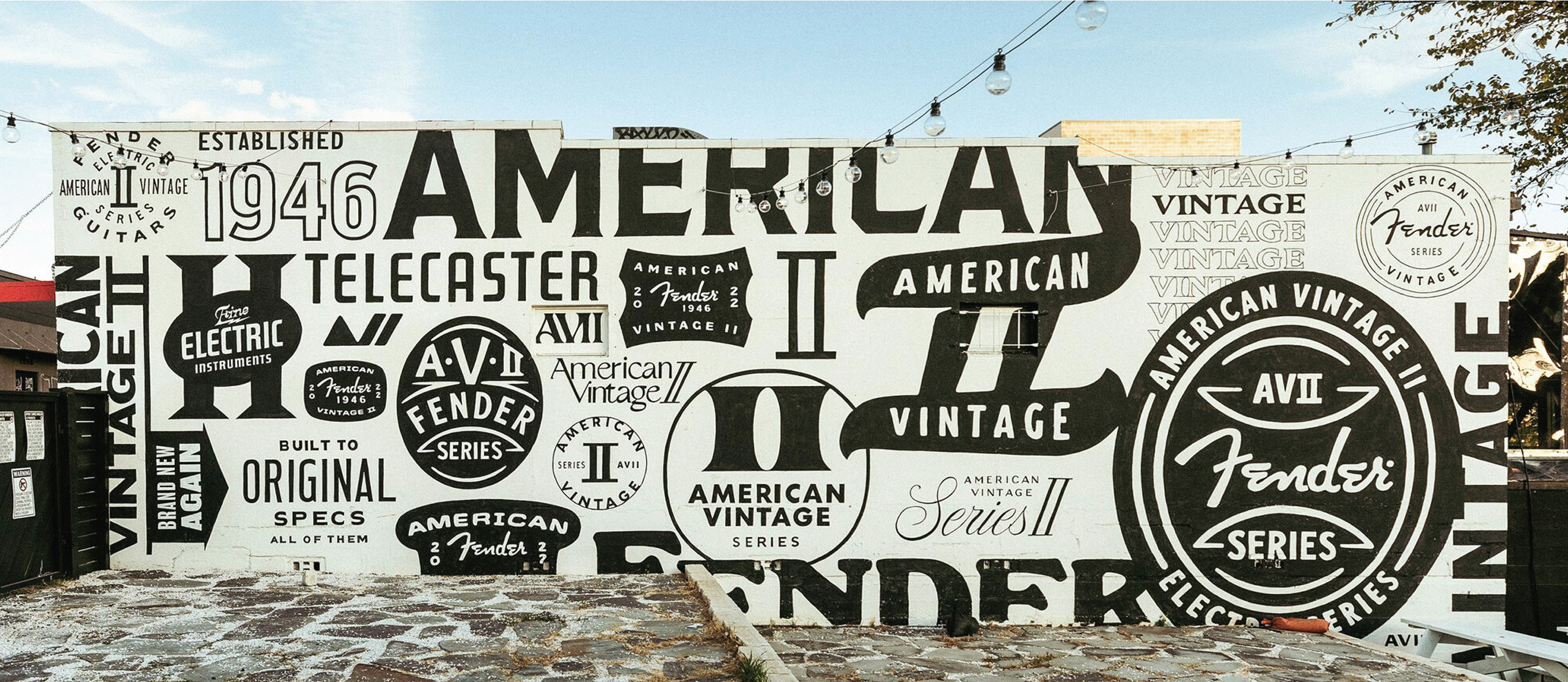 For this Fender guitar line, I designed a script logo that captured a vintage feel true to the era of the original releases. We explored a wide range of badge concepts, many of which didn’t make it into the final cut. Those unused badge designs were later repurposed as part of the murals for the Fender activation, creating photo opportunities and additional brand recognition. Designed with my buddy Colin Mumbach.