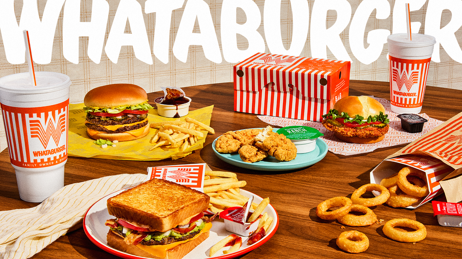 On the Whataburger account, I worked across a wide range of projects, including monthly promotions, menu design, mural design, advertising, packaging, and photoshoot art direction. I also had the opportunity to design the new annual convention logo. No matter the assignment, I carried the Whataburger's signature orange and white stripes throughout the creative.