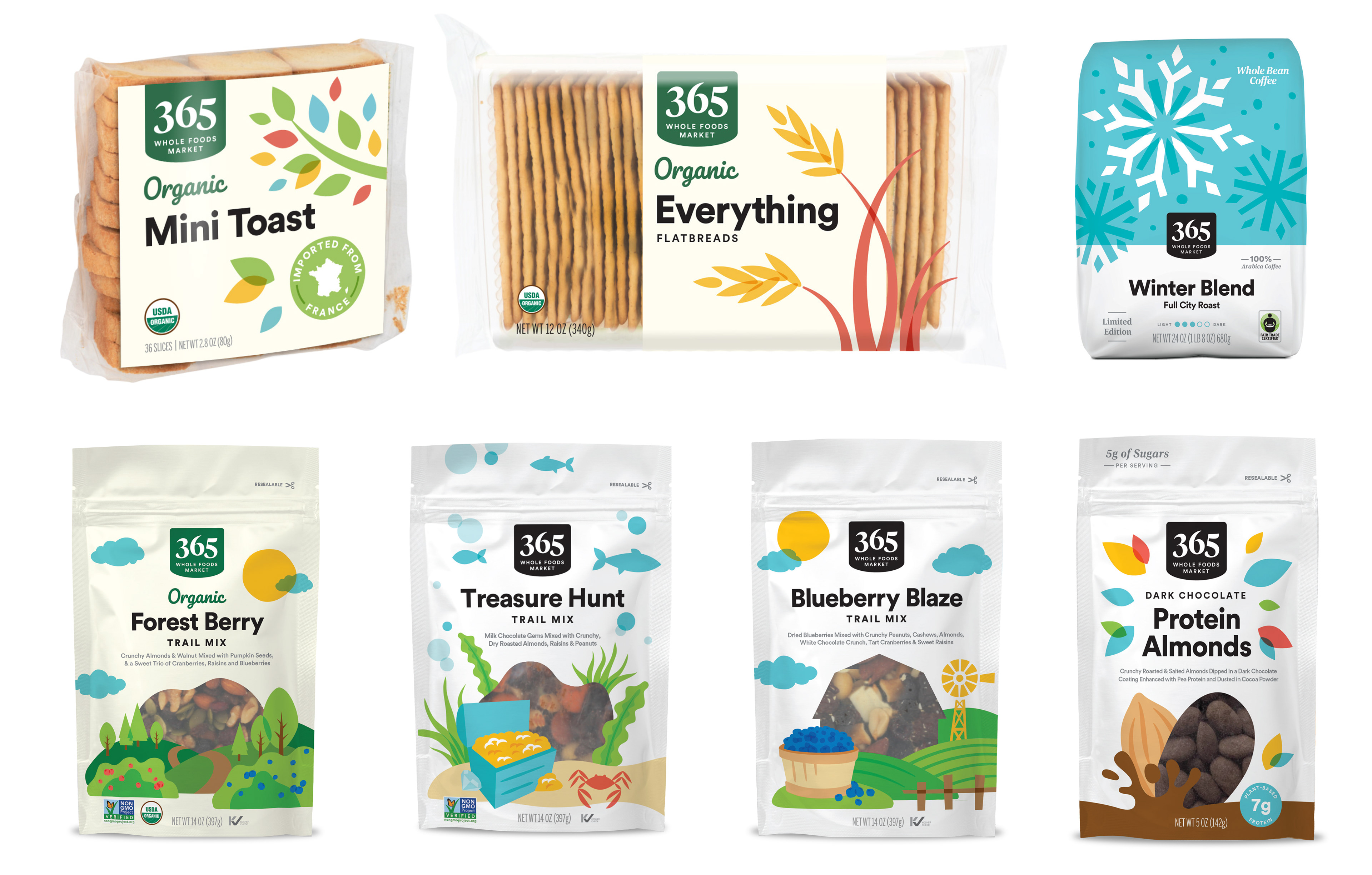 Collaborated on the expansion of Whole Foods 365 and high-end Private Label packaging lines, contributing both illustration and art direction. Directed photoshoots to capture fresh, natural food imagery, and worked closely with a studio artist to refine final artwork, ensuring visual consistency across the entire product range.